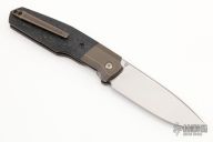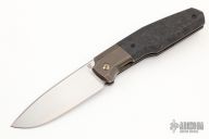 This linerlock was designed by Philippe Jourget and manufactured by CKF. This knife features a hand rub satin finished drop point blade with a file worked thumbrest. The handle is composed of titanium liners, zirconium bolsters and backspacer, milled marble carbon fiber scales. Titanium tip up pocket clip. Includes a padded Velcro case, COA and extra hardware. Has a couple light scuffs, otherwise excellent condition.