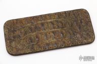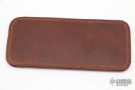 This leather slip sheath by Robertson Leather Works features hand dyed caiman skin. It is 5.5" long by 2.5" wide. New from maker at the 2022 Blade Show West.