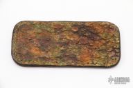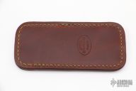 This leather slip sheath by Robertson Leather Works features hand dyed snapping turtle skin. It is 4.25" long by 2" wide. New from maker at the 2022 Blade Show West.