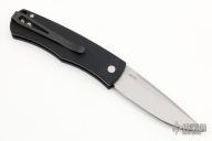 This Magic BR-1 Bolster Release Automatic from Pro-Tech Knives features a drop point stonewashed 154-CM blade with swedge. The handle has a black aluminum frame with checkered bolster. Black coated stainless steel clip is positioned for tip up carry. Lanyard hole in the pommel. Includes original box. Excellent condition.