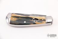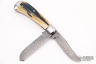 This Two-Blade Trapper by Chris Sharp features his Patented see-through escutcheon. The handle has 416ss fluted bolsters with integral liners and escutcheons, mammoth ivory covers, stainless steel springs. Has half-stop, flush in all positions. Comes with zippered case. New from maker!