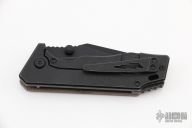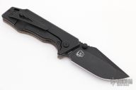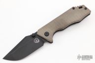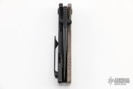 This Mini J-Cape from Something Obscene Company features a black tumbled blade with notched thumbbrest and flipper tab. The handle has a micarta scale, black tumbled titanium frame with matching titanium clip and backspacer. Comes with original box. Excellent condition.