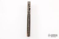 Cliff Parker became a full time knifemaker in 2000. "I forge all of my own damascus. I really enjoy theme knives, forging an image of something and using handle material from what ever the image happens to be and for an added touch, setting a piece of the same material in the thumbstud. I use nothing but the best of materials. My knives are known for being very slim, light weight with very smooth actions and first class fit and finish. All liners are fully fileworked anodized titanium."