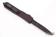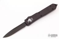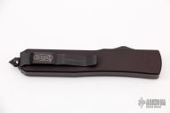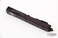 This Ultratech OTF automatic features a S/E black Melonite finished blade with a black aluminum frame. Stainless steel clip, tip down carry. Glass breaker. Serial number 23046 and dated 08/2009. Comes with original box, sheath and papers. Excellent condition.