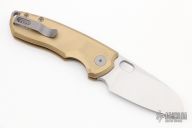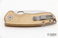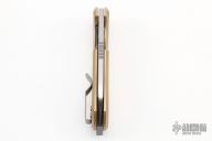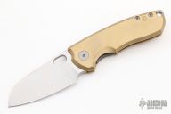 This F5.5 by Urban EDC features a satin finished sheepsfoot blade with thumbhole and notched thumb rest. The handle has a tumbled titanium frame with brass scales, and a matching tip up pocket clip. Comes with a zipper case. Excellent Condition.