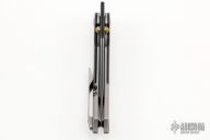 - Shred carbon fiber handle scales with rear titanium bolsters.