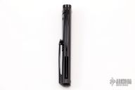 This Six framelock flipper by Michael Zieba features a black Magnacut blade with notched thumbrest and false top edge. The handle has a black titanium frame with matching tip up clip, anodized titanium pivot collar. Comes with zippered case and COA dated 9-9-22. New from maker.