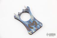 Titanium Knuckle by Max Knives. Holds two titanium toothpicks via friction that can also be turned around to make a very pointy knuckle. Comes with a velcro case. New from maker at the 2022 Blade Show West.