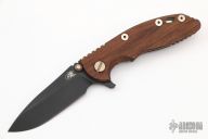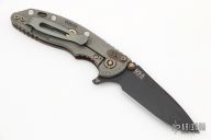 This Vintage Series XM-18 from Hinderer Knives features a black 01 Tool Steel blade with swedge, dual thumb studs, notched thumb rest and flipper. The handle is comprised of a walnut scale with a titanium liner on the "A" side and a working finished titanium lockside, pocket clip, hardware and lock bar stabilizer, and lanyard hole in pommel. Includes the original box and hardware. Excellent Condition.