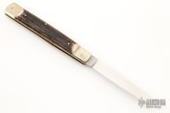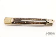 This leverlock auto by Hubertus features a drop point blade, nickel silver double bolsters, stag scales, and brass liners and pins. Opens with a nice snap. Very fast opening. Has some light scuffs and scratches, otherwise excellent condition.