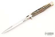 This Picklock by AGA Campolin features a satin polished bayonet ground blade with false top edge. The handle has nickel silver bolsters, stag scales, brass liners and a stainless steel backspacer/lock. Excellent Condition.