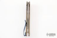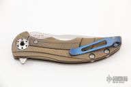 This 0609 RJ Martin flipper by Zero Tolerance features a satin finished blade with stonewashed flats, notched thumbrest and flipper. The handle has a milled and anodized titanium frame with a tip up reversible stainless steel clip. Rides on bearings, nice detent, lockup and blade seating. S/N 7589. Excellent condition.