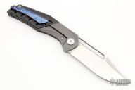 Adam Purvis joined forces with We Knife Co. to bring you his first APurvis Blades production line, the Primordial. Adam wanted to create a high quality EDC knife at a price point that normal working people could afford. The Primordial is nimble and lightweight in hand, with a modified clip point blade that provides versatile cutting performance with a sharp tip and a slight recurve edge. Tackle your daily cutting tasks in style with the Primordial from APurvis Blades. Features: Blade runs on a ceramic ball bearing pivot for authoritative deployment. Steel reinforced titanium lockbar offers secure lock up and over-travel protection. Item includes a milled titanium pocket clip for convenient everyday carry. This knife has a tumbled titanium handle with carbon fiber scales, and upgraded backspacer, with a matching tip up clip. It has a hand rub satin finished clip point recurve blade with swedge and thumbhole. Comes with original, clip and backspacer, box and papers. Excellent condition.