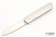 This iQ by Quiet Carry comes with a frame lock style locking mechanism and includes a stainless steel lock bar insert. The blade is a sheepsfoot style blade and you have a knife that excels with scoring and slicing tasks. Titanium scales, hardware, and stainless over travel stop. Comes with original box, Excellent condition.