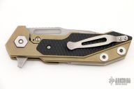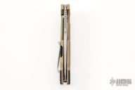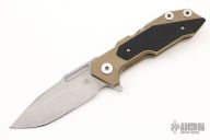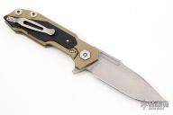 This Fulltrack flipper from Rick Hinderer Knives was just released at the 2018 Blade Show and this is the quite possibly the coolest design we've seen since the XM-18! This one features a working finished, spear point shaped blade with notched thumbrest and flipper. The handle is battle bronze finished titanium with black G-10 scales that can be removed to reveal a hidden pocket/storage area that was designed to hold additional pivot washers. This entire knife can be field stripped using a tool that rests between the handle scales. The tool has a spring that holds the tool between the standoffs. Come with Tri-Pivot system. Excellent condition. Comes with original box and extra hardware.