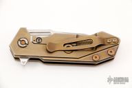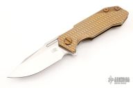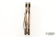 This Half Track from Hinderer Knives features a stonewash finished blade with swedge, fullers, notched thumbrest and flipper. The handle is comprised of a tumbled and anodized titanium frame over barrel spacers. Titanium clip is positioned for tip up, right hand carry. Includes a Hinderer box and extra hardware.  Excellent Condition.