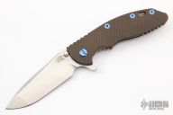 This XM-18 Spanto by Rick Hinderer Knives features a stonewashed S45VN blade, notched thumbrest and dual thumbstuds. The handle has a textured battle bronze titanium scale, and stonewashed titanium handle/clip. Anodized titanium hardware. Clip can be mounted for tip up or down carry. Nice lockup, seating, and detent. Comes with a Hinderer box and extra hardware. Excellent condition.