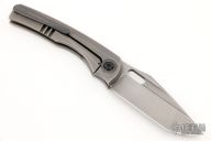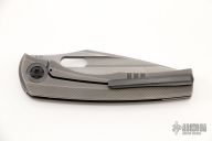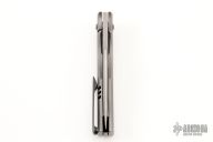 This BBM V2 by Nick Chuprin and Robert Carter features an acid etched blade with fullers, thumbhole and milled bevels. The handle has an acid etched titanium frame, black titanium pivot, screws, zirconium pivot collar, backspacer and tip up clip with hidden screws. Rides on bearings, nice detent, lockup and blade seating. Comes with a zippered case. Excellent condition.