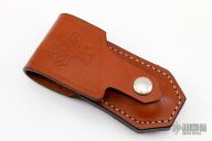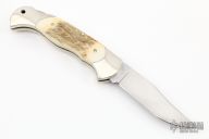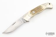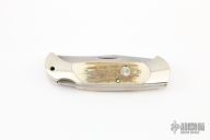 This knife by Boker features a satin finished clip point blade with nail nick. The handle has a nickel silver frame with stag inlays. Comes with original brown leather sheath and the original box.  Excellent condition.