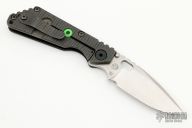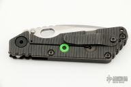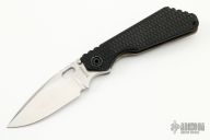 This SNG framelock folder by Mick Strider features a stonewashed blade and a dimple pattern black aluminum and flamed titanium frame and tip up titanium clip. Includes "Lock Bar Stabilizer" for maximum reverse lock retention. Nice detent, lockup and blade seating. Has some scuffs, otherwise good condition.