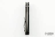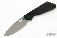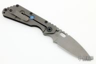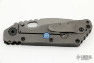 This SMF from Strider Knives features a bead blasted blade and textured black G-10 and bead blasted titanium handle and matching tip up titanium clip. Notches on thumbrest, rear of handle, and lockup. Includes Hinderer "Lock Bar Stabilizer" for maximum reverse lock retention. Has some scuffs, otherwise good condition.