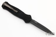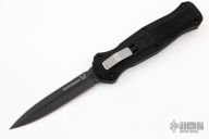"Introducing an OTF like none-other.. The new Infidel® is rapidly making believers out of many a skeptic. Built for strength and reliability the patent pending double-action mechanics get it done over the long haul. Grab on and you will find the handle grip rock-solid with its patented machined in Presidio® style bi-directional tread pattern, and overall generous sizing for gloved hands. Intuitively pressure the release-slide forward and its spear-point edged steel fires and locks up with a unique three-point retention system with amazingly negligible blade play. Reverse the process and the blade retracts in a rapid blur of motion. The Benchmade Infidel is a special operator’s fantasy come true." Includes original sheath. Excellent condition.