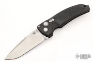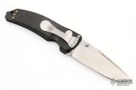 Features one-piece black frame which is made from high glass content reinforced polymer. 154-CM stonewashed blade. Push button lock mechanism. The blade comes out with a refined smoothness and locks securely into place. For easy carry there is also reversible pocket clip.