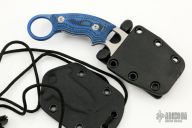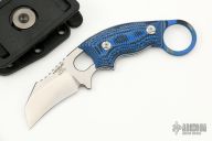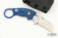 This Karambit by Hogue Knives features a stonewashed blade with notched thumbrest, .155" blade stock and 1.111" blade depth. full tang construction. The handle has G-mascus scales and ring. Comes with an ambidextrous kydex neck sheath and and injection molded belt sheath. Comes with original box and papers. Excellent condition.