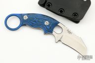 This Karambit by Hogue Knives features a stonewashed blade with notched thumbrest, .155" blade stock and 1.111" blade depth. full tang construction. The handle has G-mascus scales and ring. Comes with an ambidextrous kydex neck sheath and and injection molded belt sheath. Comes with original box and papers. Excellent condition.