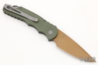 This TR-5 by Pro-Tech Knives features a FDE Cerakote spear point blade. The handle has an OD aluminum handle with two-tone cerakote stainless steel backspacer with lanyard hole, ,matching tip up blade stainless steel clip.  Excellent condition.