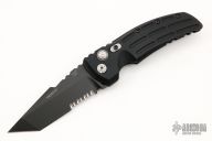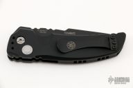 This EX-A01 by Hogue Knives is an Allen Elishewitz design, it features a black tanto partially serrated 154CM blade with notched thumbrest. The handle is black aluminum, tip up or down reversible black stainless steel clip. Has safety. Comes with Hogue box and papers. Excellent condition.