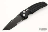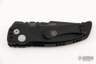 This EX-A01 by Hogue Knives is an Allen Elishewitz design, it features a black tanto partially serrated 154CM blade with notched thumbrest. The handle is black aluminum, tip up or down reversible black stainless steel clip. Has safety. Comes with Hogue box and papers. Excellent condition.