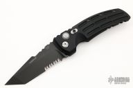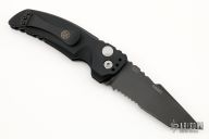This EX-A01 by Hogue Knives is an Allen Elishewitz design, it features a black tanto partially serrated 154CM blade with notched thumbrest. The handle is black aluminum, tip up or down reversible black stainless steel clip. Has safety. Comes with Hogue box and papers. Excellent condition.