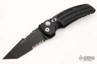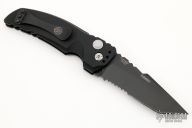 This EX-A01 by Hogue Knives is an Allen Elishewitz design, it features a black tanto partially serrated 154CM blade with notched thumbrest. The handle is black aluminum, tip up or down reversible black stainless steel clip. Has safety. Comes with Hogue box and papers. Excellent condition.