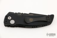 This EX-A01 by Hogue Knives is an Allen Elishewitz design, it features a black tanto partially serrated 154CM blade with notched thumbrest. The handle is black aluminum, tip up or down reversible black stainless steel clip. Has safety. Comes with Hogue box and papers. Excellent condition.
