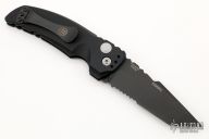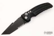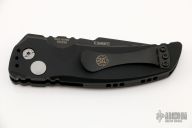 This EX-A01 by Hogue Knives is an Allen Elishewitz design, it features a black tanto partially serrated 154CM blade with notched thumbrest. The handle is black aluminum, tip up or down reversible black stainless steel clip. Has safety. Comes with Hogue box and papers. Excellent condition.