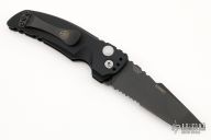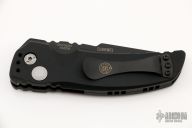 This EX-A01 by Hogue Knives is an Allen Elishewitz design, it features a black tanto partially serrated 154CM blade with notched thumbrest. The handle is black aluminum, tip up or down reversible black stainless steel clip. Has safety. Comes with Hogue box and papers. Excellent condition.
