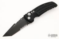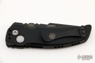 This EX-A01 by Hogue Knives is an Allen Elishewitz design, it features a black tanto partially serrated 154CM blade with notched thumbrest. The handle is black aluminum, tip up or down reversible black stainless steel clip. Has safety. Comes with Hogue box and papers. Excellent condition.