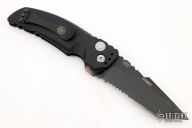 This EX-A01 by Hogue Knives is an Allen Elishewitz design, it features a black tanto partially serrated 154CM blade with notched thumbrest. The handle is black aluminum, tip up or down reversible black stainless steel clip. Has safety. Comes with Hogue box and papers. Excellent condition.