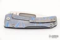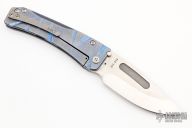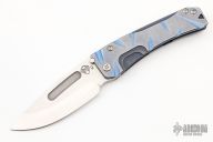 This Slim Midi Marauder from Medford Knife and Tool features a stonewashed drop point blade with thumb stud and recess. The handle is comprised of a milled, anodized, carved, and tumbled titanium frame with tip up clip over a a satin finished stainless steel spacers. Excellent detent, lockup, and seating. Original box and case. Excellent condition
