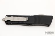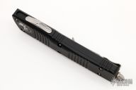 This Combat Troodon OTF automatic features a satin finished D/E blade with a standard edge. Black aluminum handle with a tip down blasted stainless steel clip. Glass breaker. Serial number 34321 and dated 04/2021. Comes with original box and papers. Excellent condition.