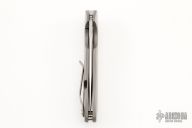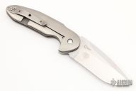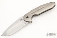 This Creep framelock flipper by David Mosier features a satin finish blade with false top edge and an orange peel finished titanium frame. This is a Tashi Bharucha design. Smooth IKBS flipper action requires no wrist movement. Perfect blade seating, strong lockup and detent. Nice feel in hand. Excellent condition.