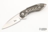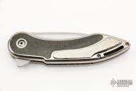 This Glimpse linerlock flipper by Todd Begg features a hand rub satin finished blade with flipper. The handle has a polished titanium frame with carbon fiber inlays, lanyard hole and tip up titanium clip. Nice detent, lockup and blade seating. Excellent condition. Comes with a zippered case.