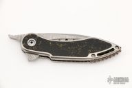 This is a Glimpse Friction Folder flipper by Todd Begg features a Damasteel blade with flipper and notched friction bar. The handle has a titanium frame with stone inlays and Damascus backspacer. Comes with a zippered case. Excellent condition.