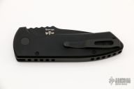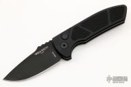 The Short Bladed Rockeye, or SBR for short, is a compact version of the outstanding full sized Rockeye Auto. Both knives are designed by Marine Corps knife designer Les George, who’s ergonomic hard use knives have been faithfully translated to automatic versions by Pro-Tech. The SBR features a compact design, with a 2.5″ blade that’s built for a multitude of cutting tasks. A pocket milled spine adds extra grip and depth to the design. The SBR features a solid black aluminum handle, blasted hardware, black DLC coated deep carry clip, and a black blade.  Excellent condition. Comes with original box.