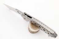 Pat Crawford and his son Wes are recognized as leading practitioners of the bladesmith's craft. Their company, Crawford Knives, is located in West Memphis, Arkansas. Pat, a pioneer in the combat folder genre, has been a member of the Knifemakers' Guild since 1973. He was among the first to integrate titanium into his folder, and to skeletonize his frames and handles to reduce weight and enhance the grip of the knife. He uses the stock removal method, specializing in high tech, self defense tactical folders, favoring different and unique knives. Handle materials include wood, ivory, stag horn, micarta, and other exotic materials when available. Pat says, "The reason I make knives is for the personal satisfaction I receive in being my own boss, and producing a thing of beauty that will stand the test of time." Pat designed the CRKT Point Guard, Crawford / Kasper Folders and Falcon series.
