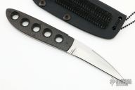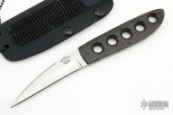 This Beladus by Bud Nealy features a hand rub satin finished hawkbill blade with false top edge and notched thumbrests. Marked #7291. This piece has full tang construction, .119" blade stock, .869" blade depth, and carbon fiber scales. Comes with a kydex sheath. Excellent condition.