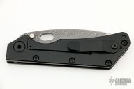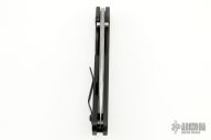 This Duane Dwyer Custom SNG features a Chad Nichols San Mai Damascus pike blade with thumbhole. The handle has a black coated titanium handle with front side carbon fiber scale. Black titanium clip. Notches on thumbrest, rear of handle, and lockup. Includes Hinderer "Lock Bar Stabilizer" for maximum reverse lock retention. Nice lockup and blade seating. Excellent condition. Comes with a zippered case.
