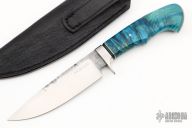 This Hunter by Milan Mozolic features a satin finished blade with forge finished flats, .167" blade stock and 1.306" blade depth, hidden tang construction. The handle has a stainless steel guard with black G-10 and stainless steel spacer, beautiful dyed maple grip with a single polished and domed stainless steel pin. Comes with a black leather sheath. Comes with COA. New from maker!