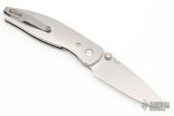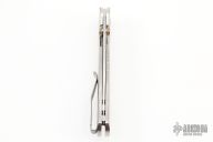 This Atom Linerlock by Three Rivers features a stonewash finished blade with dual thumbstuds. The handle has milled titanium scales, titanium liner with a titanium tip up reversible clip. Nice detent, lockup and blade seating. Comes with Three Rivers Manufacturing box, and papers. Excellent condition.